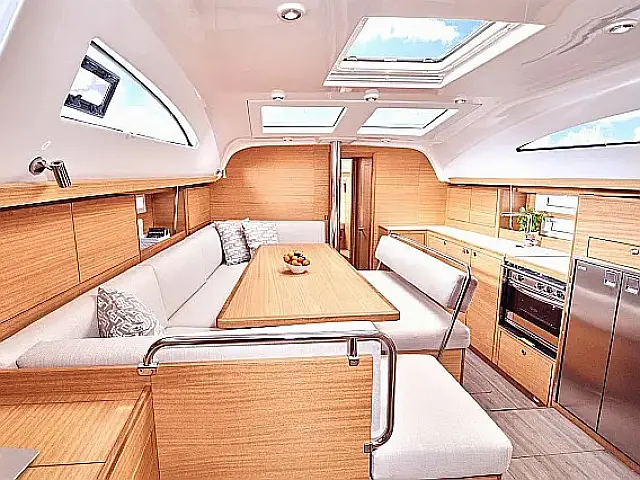 Autopilot, Bow thruster, Chart plotter Swimming platform, Bimini, Cockpit cushions, Cockpit speakers, Refrigerator, Electric toilet, Heating, Holding tank, Inverter, Sprayhood, Teak Cockpit, Wi-Fi & Internet