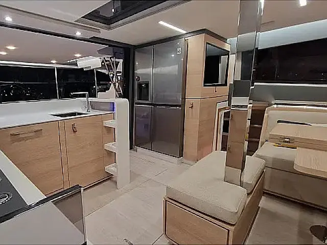 Air condition, Swimming platform, Cockpit cushions, Cockpit speakers, Dinghy, Refrigerator, Generator, Heating, Holding tank, Ice maker, Teak Cockpit, Wi-Fi & Internet Chart plotter Radio-CD player, TV
