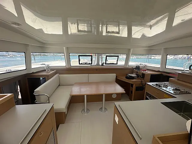 Bimini, Holding tank, Cockpit cushions, Air condition, Electric toilet, Dinghy, Refrigerator, Electric winches Autopilot, Chart plotter in cockpit Lazy bag, Lazy jack