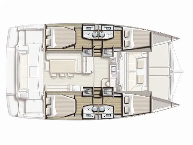 | Cabins: | 4 (4 double cabins with saloon with 2 extra beds plus 1 bow skipper cabin) |