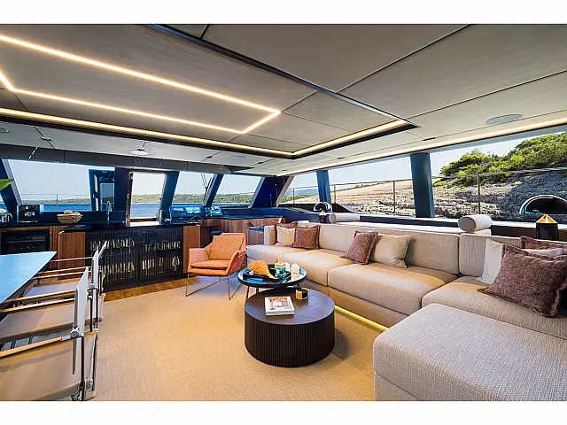 Autopilot, Radar, Chart plotter, Bow thruster TV, Snorkeling equipment, Radio-CD player Cockpit speakers, Barbecue grill in cockpit, Air condition, Heating, Swimming platform, Teak deck, Refrigerator, Generator, Solar Panels, Dinghy, Sprayhood Lazy jack, Spinnaker