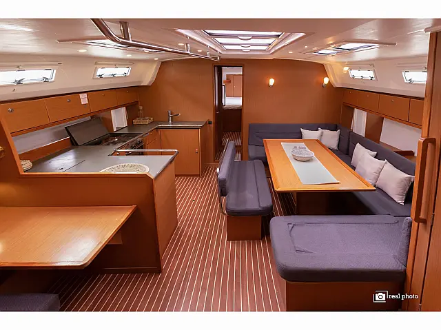 Autopilot, Bow thruster, Chart plotter, Chart plotter in cockpit Swimming platform, Bimini, Cockpit cushions, Refrigerator, Electric toilet, Solar Panels, Sprayhood, Teak Cockpit, Dinghy, Heating, Inverter Lazy bag