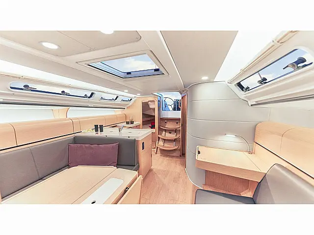 Autopilot, Chart plotter in cockpit Electric winches, Heating, Holding tank, Refrigerator, Sprayhood Lazy bag