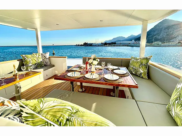 Dinghy, Dishwasher, Flybridge, Swimming platform, Generator, Solar Panels TV Autopilot, Chart plotter