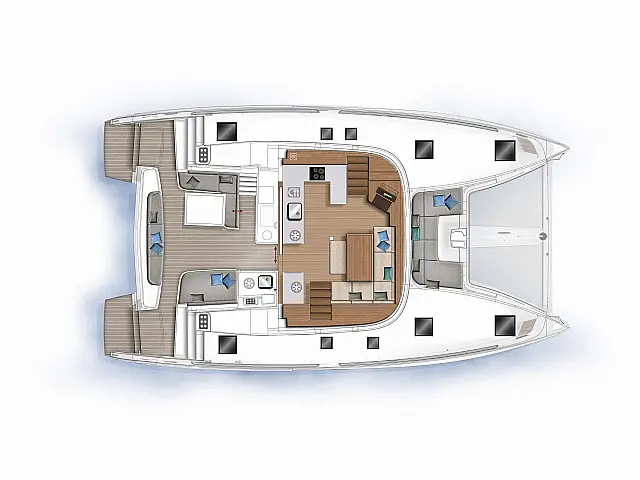 Autopilot, Chart plotter, Radar, Bow thruster Air condition, Cockpit cushions, Hydraulic gangway, Bimini, Electric toilet, Electric winches, Generator, Water maker, Refrigerator, Ice maker Lazy bag Underwater lights TV