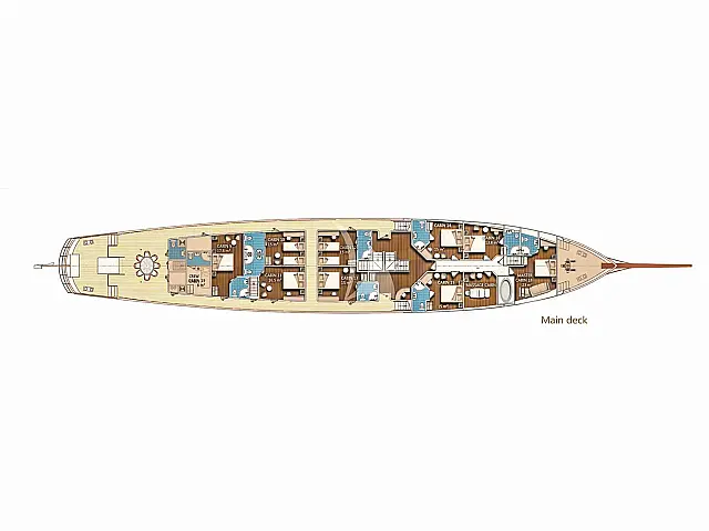 | Cabins: | 18 (7 Double Cabins, 5 Twin Cabins, 6 Convertible Cabins) + crew |