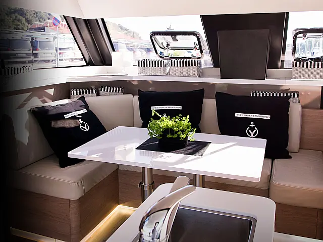 Chart plotter, Chart plotter in cockpit, Autopilot Radio-CD player, TV Cockpit speakers, Swimming platform, Refrigerator, Bimini, Sprayhood, Dinghy