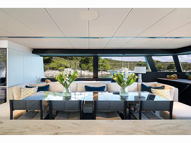 Autopilot, Radar, Chart plotter, Bow thruster TV, Snorkeling equipment, Radio-CD player Cockpit speakers, Barbecue grill in cockpit, Air condition, Heating, Bimini, Swimming platform, Teak deck, Refrigerator, Generator, Solar Panels, Dinghy, Sprayhood Lazy jack, Spinnaker