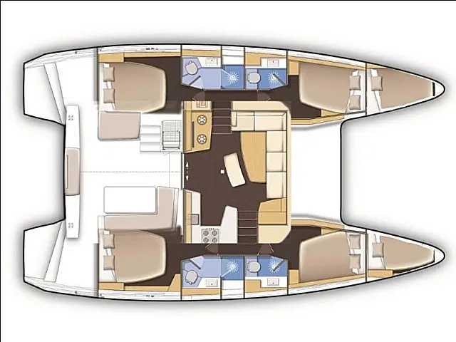 Lagoon 42 – cruising catamaran with beautiful silhouette, organic approach and smooth, elegant curves. While it retains the main features of the new generation of Lagoons, it sports a powerful and dynamic design and you can now achieve the same sailing experience as with a mono hull. The small-est angle towards the wind is significantly diminished by moving the mast unto the back and by re centering the weight. The open transoms and one-level living space from cockpit into the saloon is new for Lagoon and provides a nice unobstructed living area. All its characteristics make the new lagoon 42 the ideal boat for an active holiday, by joining maximum comfort with an exquisite sailing experience.