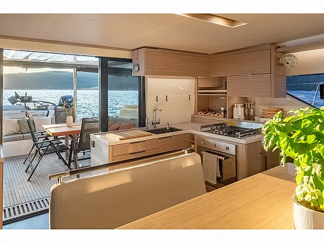 Teak Cockpit, Air condition, Electric toilet, Coffee maker, Generator, Hydraulic gangway, Outboard engine, Water maker Autopilot, Chart plotter in cockpit Radio-CD player, Stand up paddle