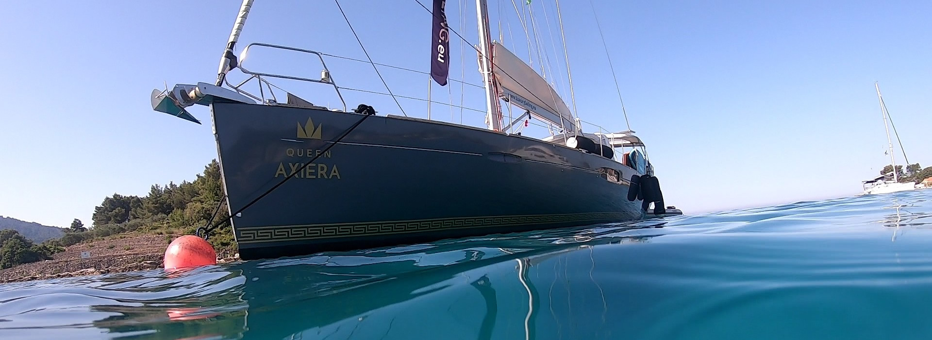 Prvi dan kao skipper preuzimam brod u Baotić Marini u mjestu Seget Donji blizu Trogira u Hrvatskoj. Došao sam malo ranije da pregledam brod prije nego dođu gosti, da se upoznam sa spremištima, opremom, sustavima i odmah se na prvi pogled vidi da to nije običan čarter brod nego nešto sasvim drugačije i posebno. Queen Axiera je čistokrvna luksuzna krstarica sagrađena da podnese sva mora svijeta i definitivno jedan od rijetkih brodova ovakve kvalitete, a da je dostupan u čarteru.