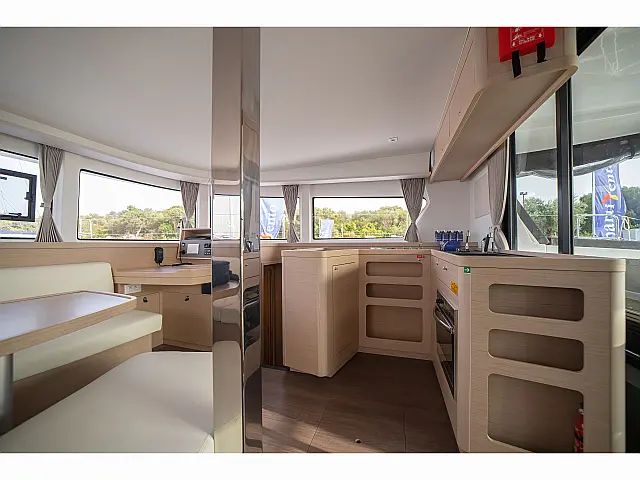 Pomoćni čamac, Vanbrodski motor, Tikovina u kokpitu, Električna vitla, Klima, Inverter, Jastuci u kokpitu, Desalinizator, Generator, Električni WC, Hladnjak Ploter karata u kokpitu, Radar Lazy bag