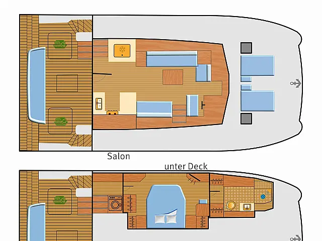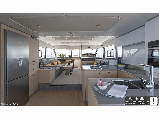 Hladnjak, Wi-Fi i internet, Klima, Desalinizator, Električni WC, Bimini, Pomoćni čamac, Crni tank, Sprayhood, Jastuci u kokpitu, Generator, Solarni paneli, Tikovina u kokpitu Radio-CD player Autopilot