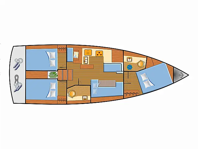 Hladnjak, Wi-Fi i internet, Bimini, Pomoćni čamac, Crni tank, Sprayhood, Jastuci u kokpitu, Solarni paneli, Tikovina u kokpitu Radio-CD player Autopilot Lazy jack, Lazy bag