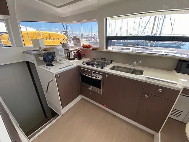 Klima, Jastuci u kokpitu, Platforma za plivanje, Inverter, Hladnjak, Aparat za kavu, Solarni paneli, Crni tank Ploter karata u kokpitu