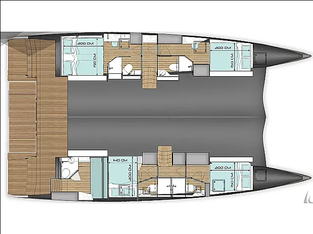Autopilot, Ploter karata, Radar Radio-CD player, Stand up paddle, TV Wi-Fi i internet, Električna vitla, Pomoćni čamac, Vanbrodski motor, Klima, Generator, Grijanje, Inverter, Desalinizator, Solarni paneli, Paluba od tikovine, Bimini, Flybridge, Aparat za kavu, Ledomat, Hladnjak, Električni WC Lazy bag, Lazy jack