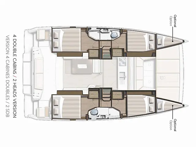 Jastuci u kokpitu, Solarni paneli, Električni WC, Platforma za plivanje, Pomoćni čamac, Hladnjak, Vanbrodski motor Autopilot, Ploter karata Lazy bag