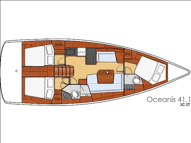 Ploter karata u kokpitu, Pramčani propeler, Autopilot Električna vitla, Inverter, Jastuci u kokpitu, Paluba od tikovine, Električni WC, Hladnjak