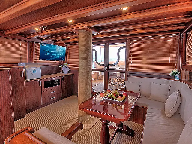 Klima, Generator, Ledomat, Solarni paneli, Wi-Fi i internet, Pomoćni čamac TV, Oprema za ronjenje na dah, Stand up paddle Radar