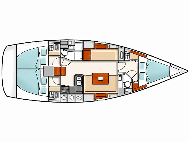 Jastuci u kokpitu, Električna vitla, Inverter, Grijanje, Bimini, Sprayhood, Hladnjak, Aparat za kavu, Električni WC Pramčani propeler, Autopilot, Ploter karata u kokpitu Radio-CD player