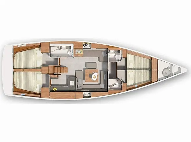 Bimini, Sprayhood, Pomoćni čamac, Solarni paneli, Električni WC Ploter karata u kokpitu, Autopilot, Pramčani propeler