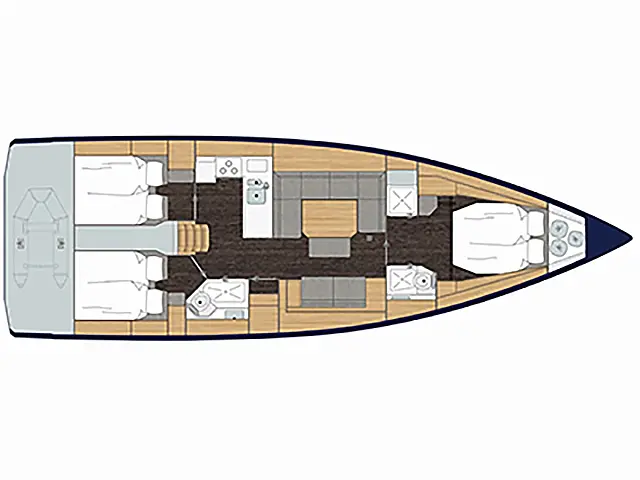 Električni WC, Bimini, Jastuci u kokpitu, Sprayhood, Paluba od tikovine, Zvučnici u kokpitu, Pomoćni čamac, Aparat za kavu, Hladnjak Ploter karata u kokpitu, Autopilot, Pramčani propeler Oprema za ronjenje na dah